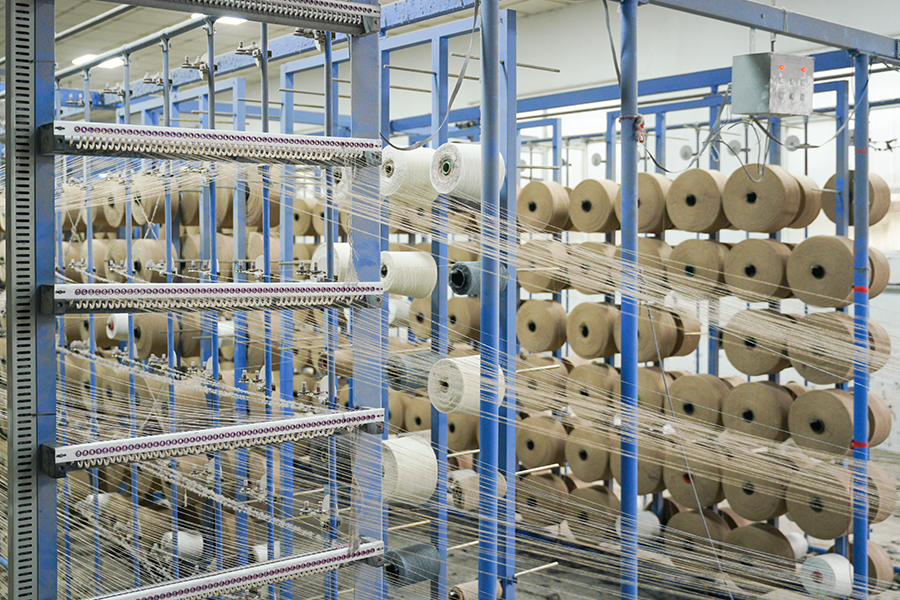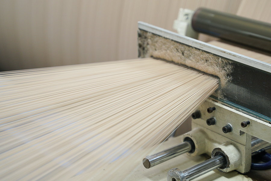 Le nostre due linee di filatura di proprietà e i 24 telai lavorano in coordinamento, semplificando significativamente i processi interni e consentendo una risposta flessibile alle vostre esigenze.